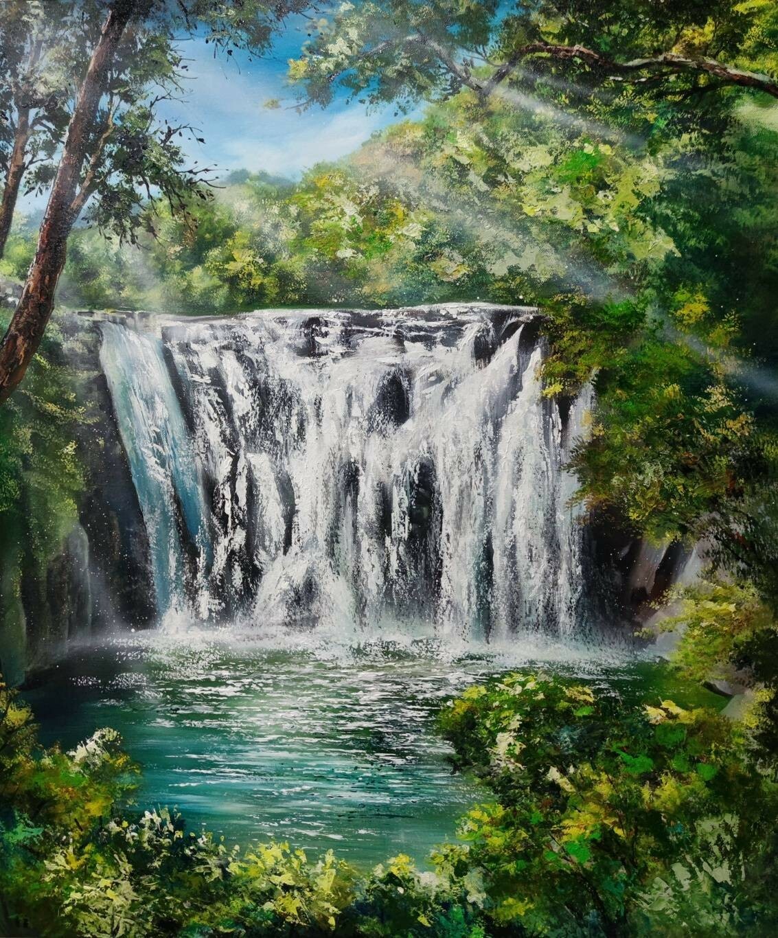 每一幅畫都是依照尹森老師堪輿現場風水後,評估後建議「色系、數量、方位」,通知畫師曾老師才進行親手「手繪」正式開畫!
