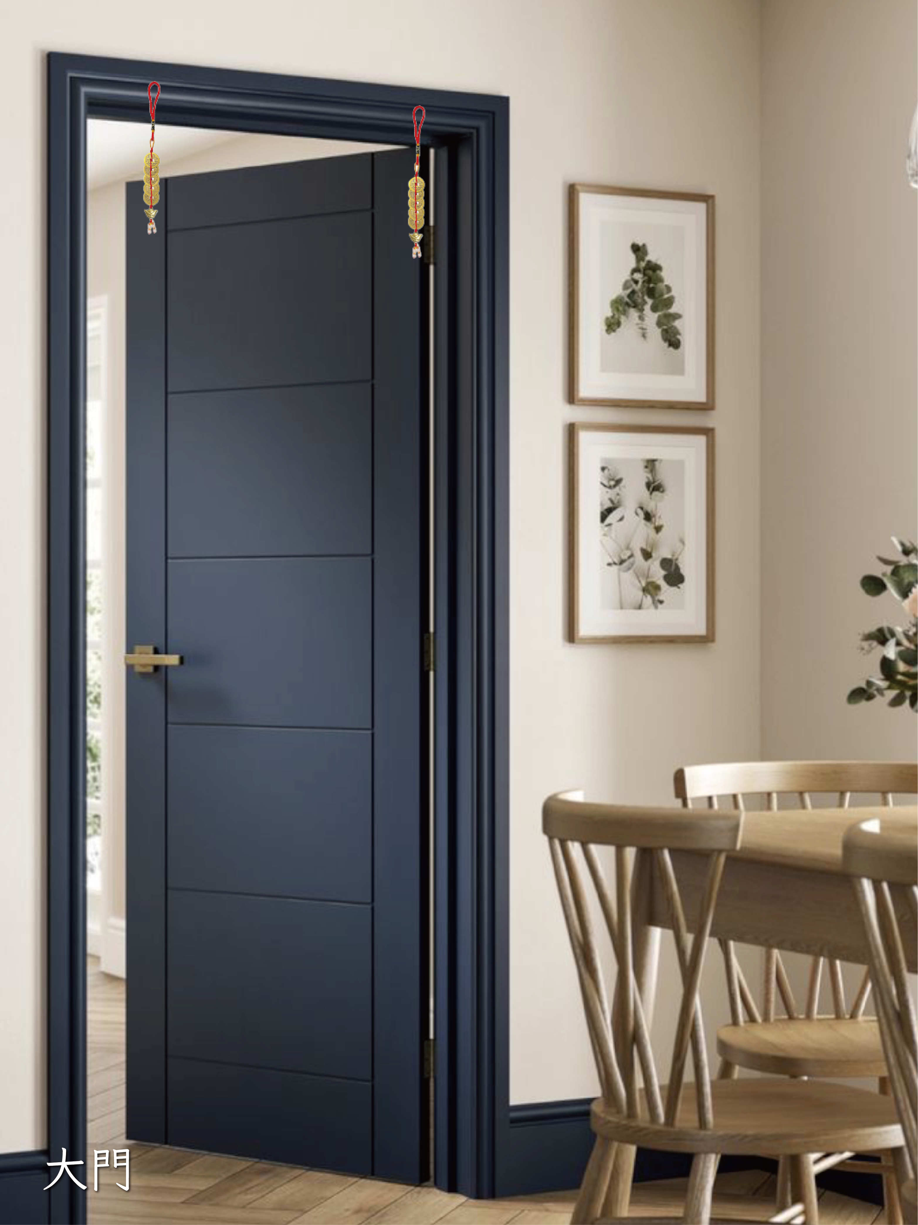 在門的兩側掛上五帝錢後,亦可加上門廉增添美感!