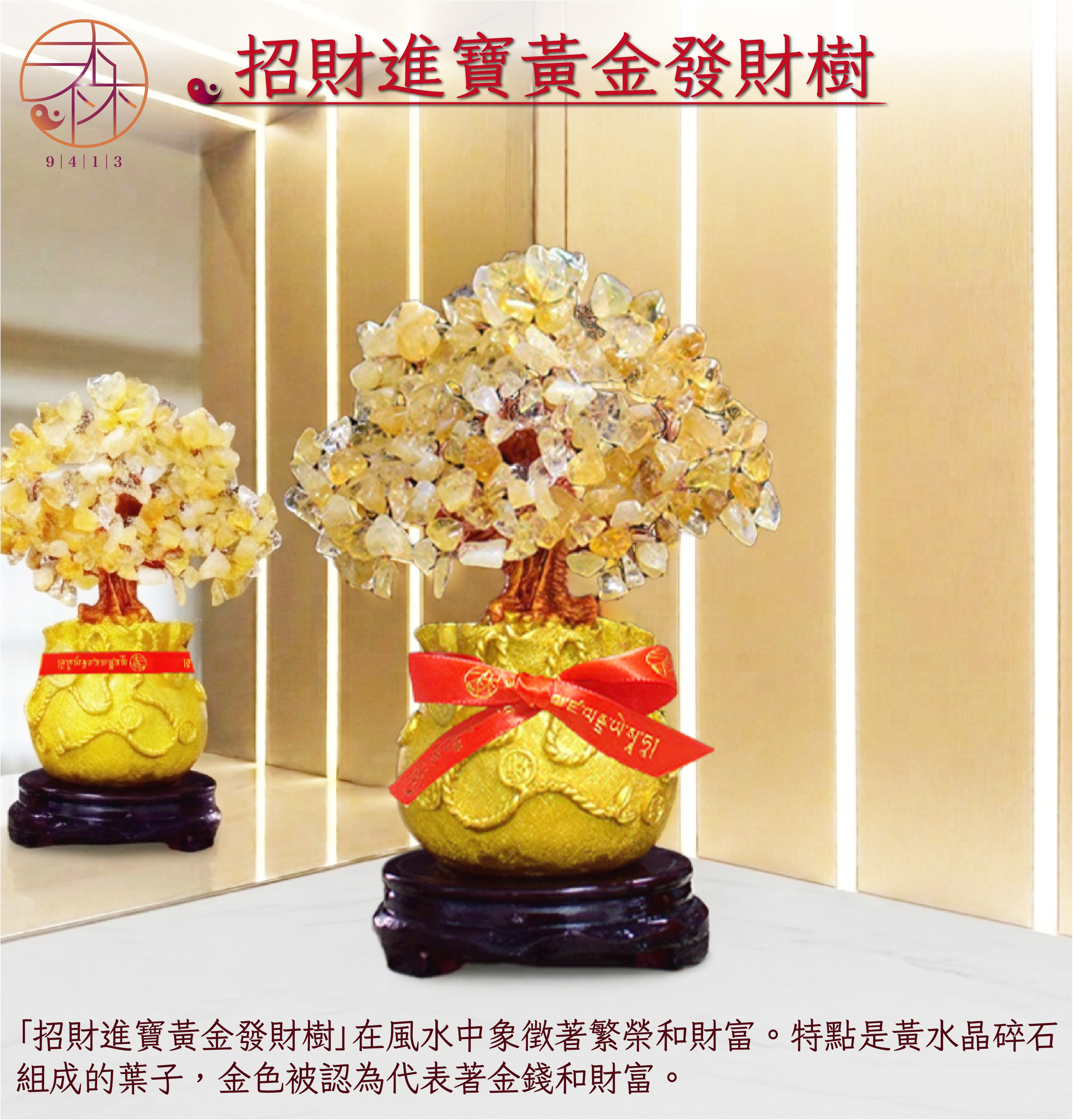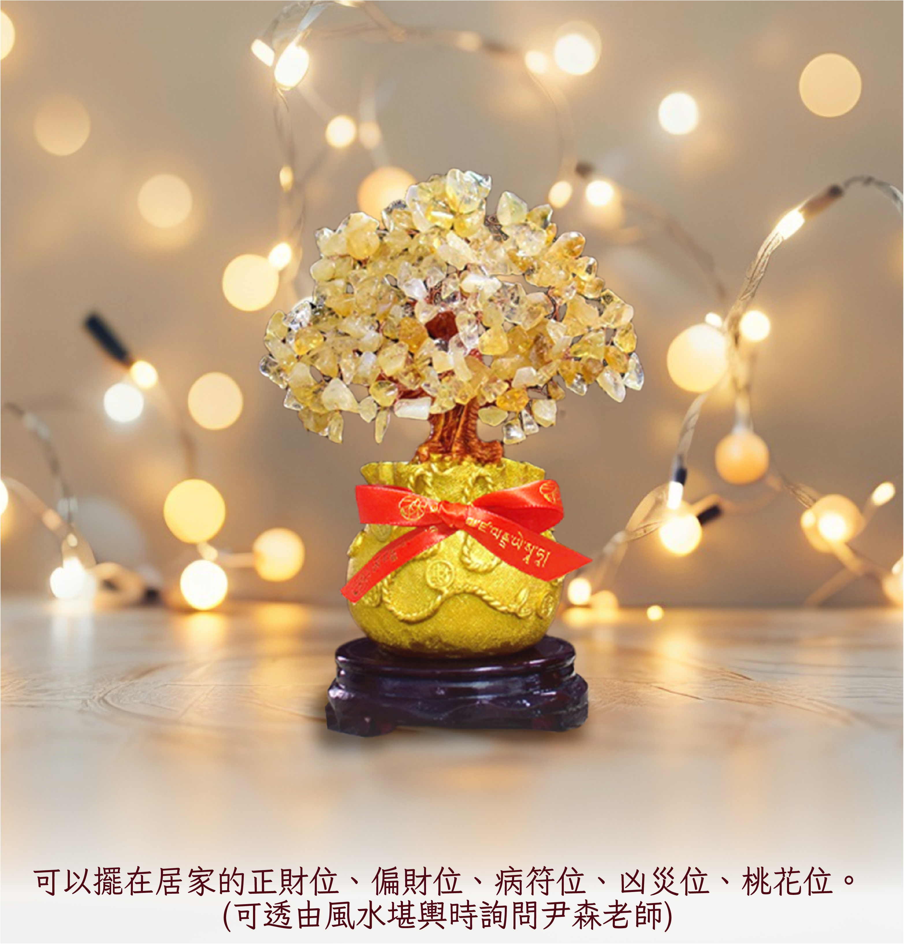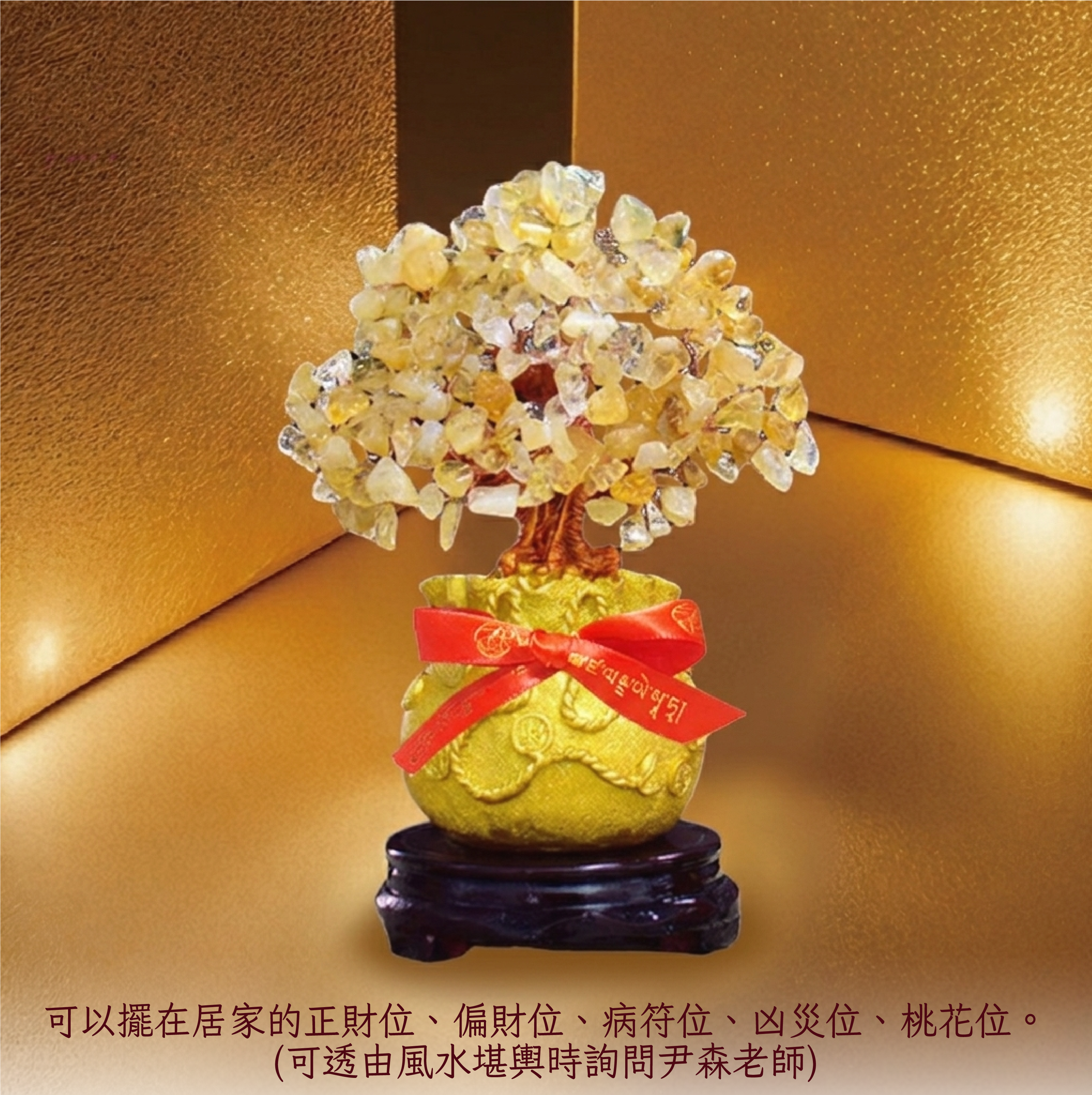 招財必備!「招財進寶黃金發財樹」在風水中象徵著繁榮和財富。特點是黃水晶碎石組成的葉子,金色被認為代表著金錢和財富。