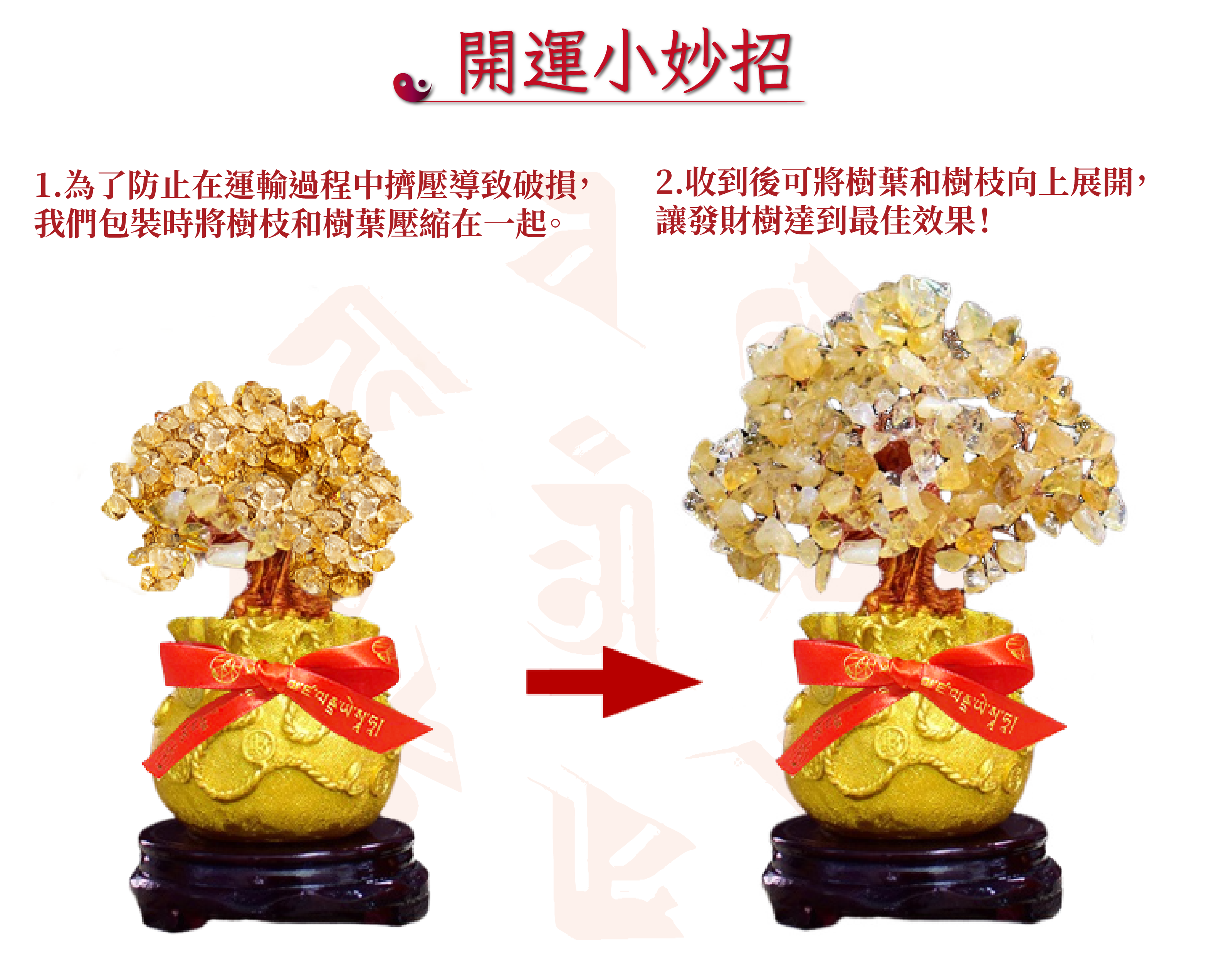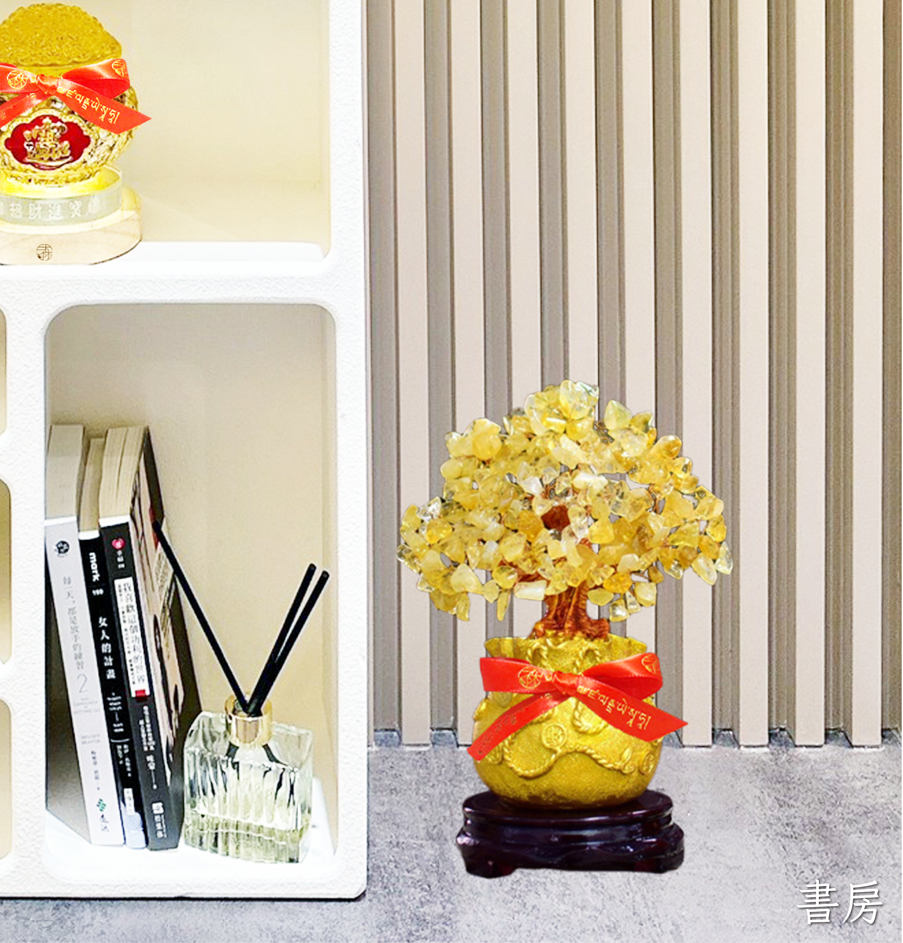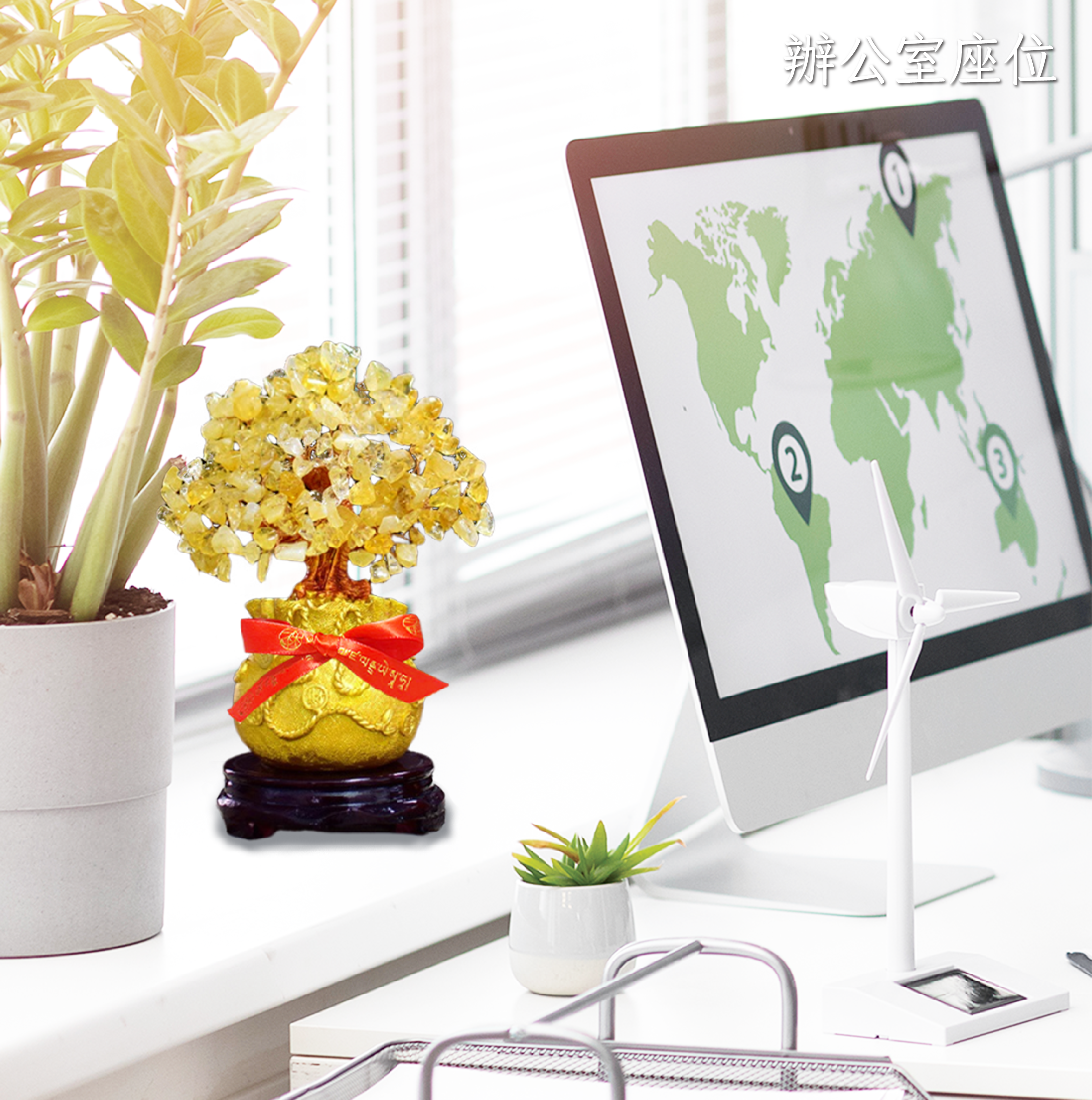 招財必備!「招財進寶黃金發財樹」在風水中象徵著繁榮和財富。特點是黃水晶碎石組成的葉子,金色被認為代表著金錢和財富。
