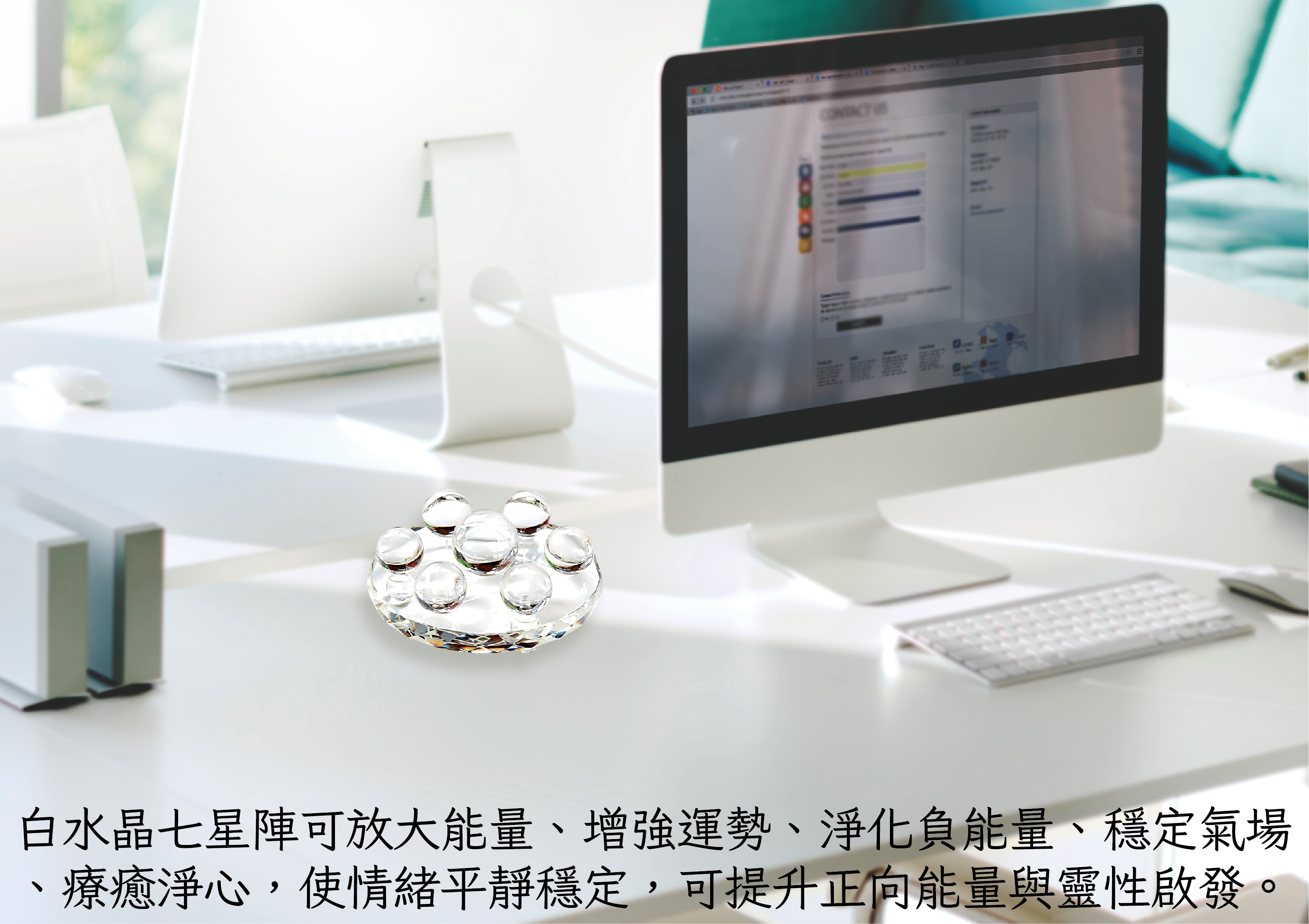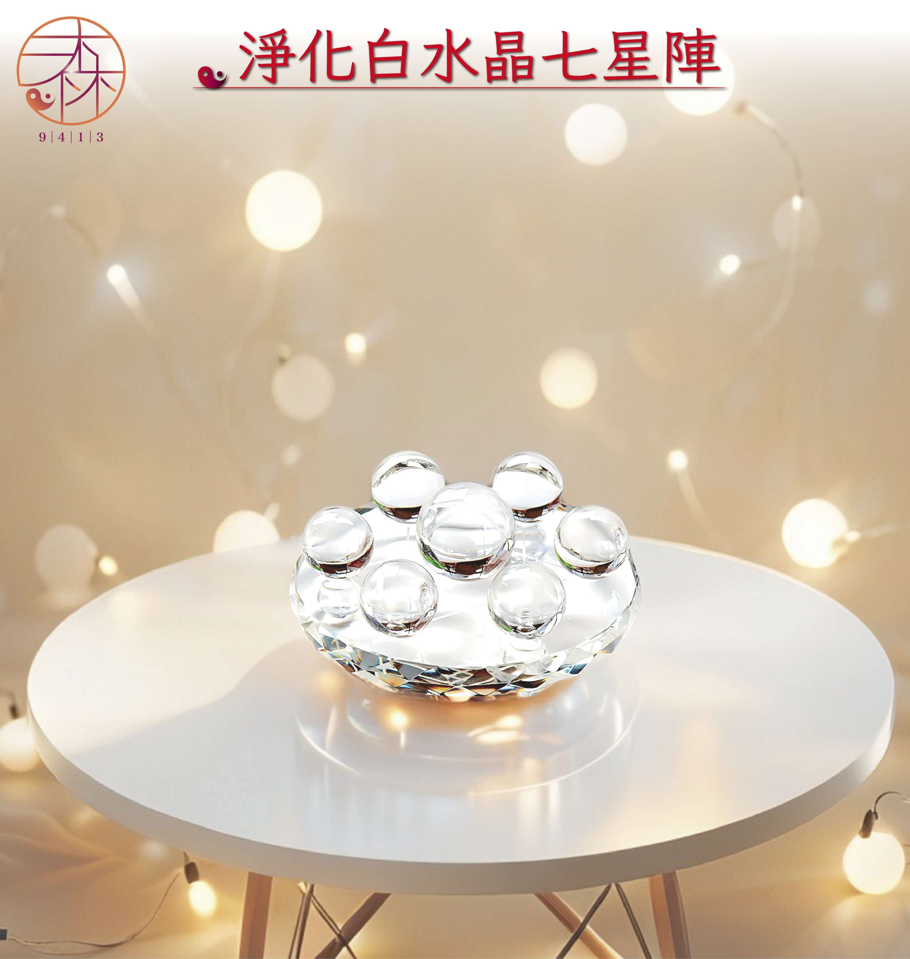 白水晶七星陣可放大能量、增強運勢、淨化負能量、穩定氣場、療癒淨心,使情緒平靜穩定,可提升正向能量與靈性啟發。